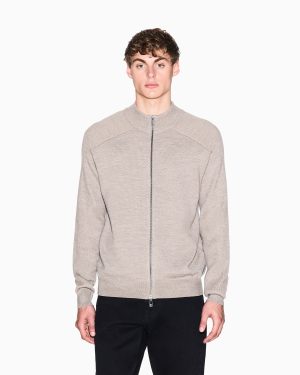 Cotton and Wool Cardigan with Ribbed Knitting