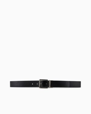 Leather belt with rectangular buckle