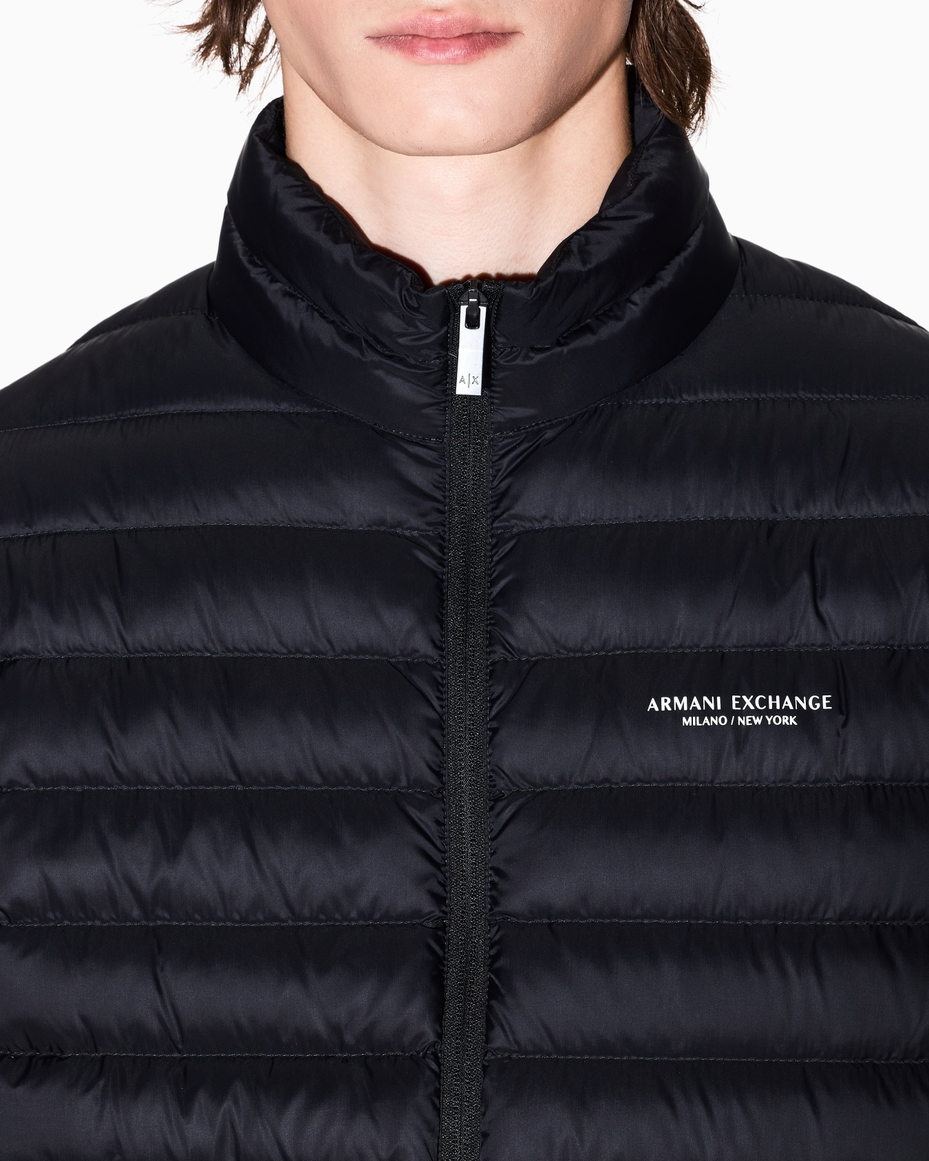 Quilted full zip down jacket