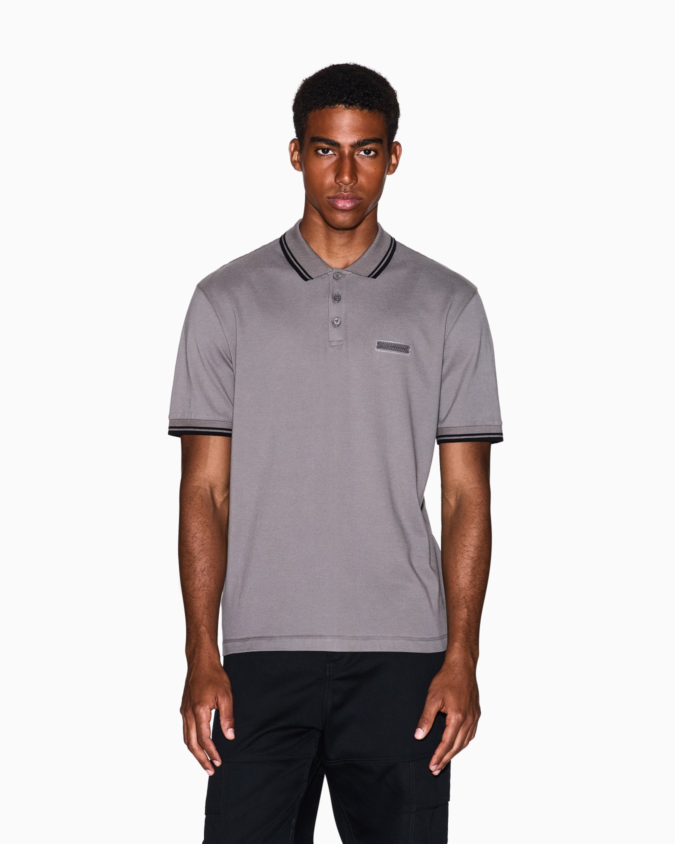 Contrasting piping pique polo shirt